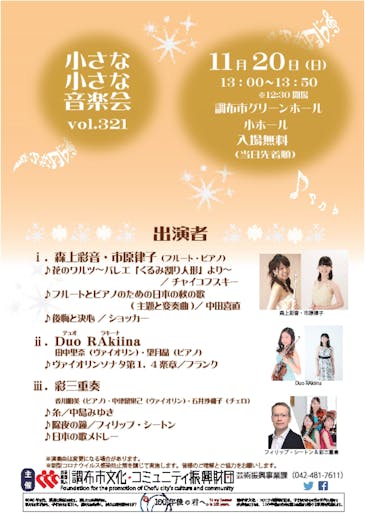 公益財団法人 調布市文化・コミュニティ振興財団 042-481-7611(調布市グリーンホール)
