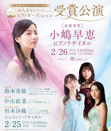 第11回せんがわピアノオーディション受賞者が繰り広げる2日間の共演!25日は優秀賞受賞の鈴木美穂さん、中山結菜さん、市民審査員賞受賞の杉本沙織さんによるジョイントリサイタルです!