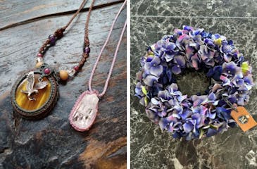 銀粘土を使用したアクセサリーを中心に、様々な素材と組み合わせた作品を制作しています。 アートクレイシルバーとは、工作粘土のように自由に形を作った後、小型の電気炉で焼くと99.9%以上の純銀となる粘土です。ウェアハウスガーデンでのもちより展のワークショップでは、主にアクセサリー作りを行っています。