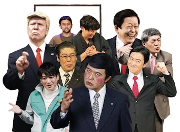 特に歴代総理大臣の形態模写(心の中まで模写!?)を中心とした政治コントは他にまねの出来ない得意分野。