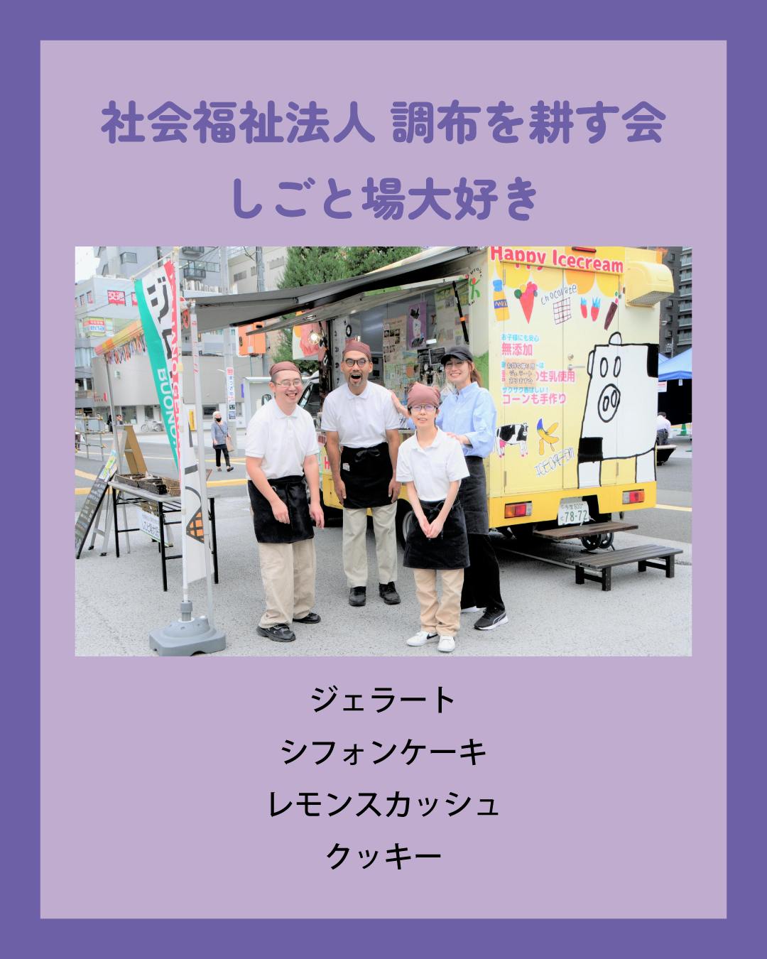 社会福祉法人調布を耕す会 しごと場大好き/ジェラート、シフォンケーキ、レモンスカッシュ、クッキー