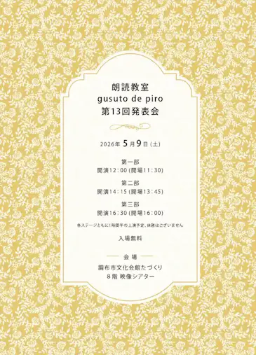 朗読教室gusuto de piroの第13回発表会を開催します。